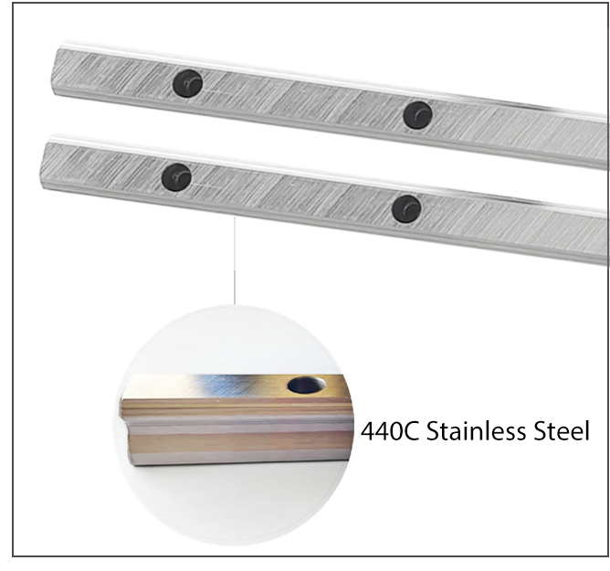 A good guide rail system should be have a good combination of sliding block and sliding rail. In order to achieve smooth operation, the 440C Stainless Steel material provides higher working accuracy of the guide rail and can be used in Special environmental.