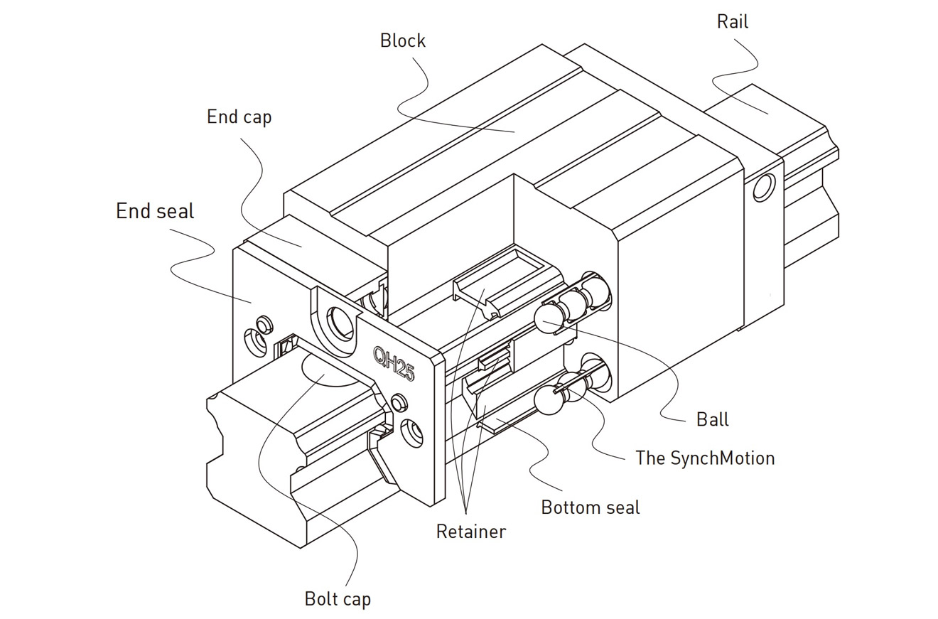 PQH series rail guide bearing also based on four row circular arc contact, due to it’s SynchMotion TM technology, PQHH series linear slide unit can offer smooth movement, superior lubrication, quieter operation and longer running life, so this precision linear slide is suitable for high speed, low noise and reduced dust generation work condition.