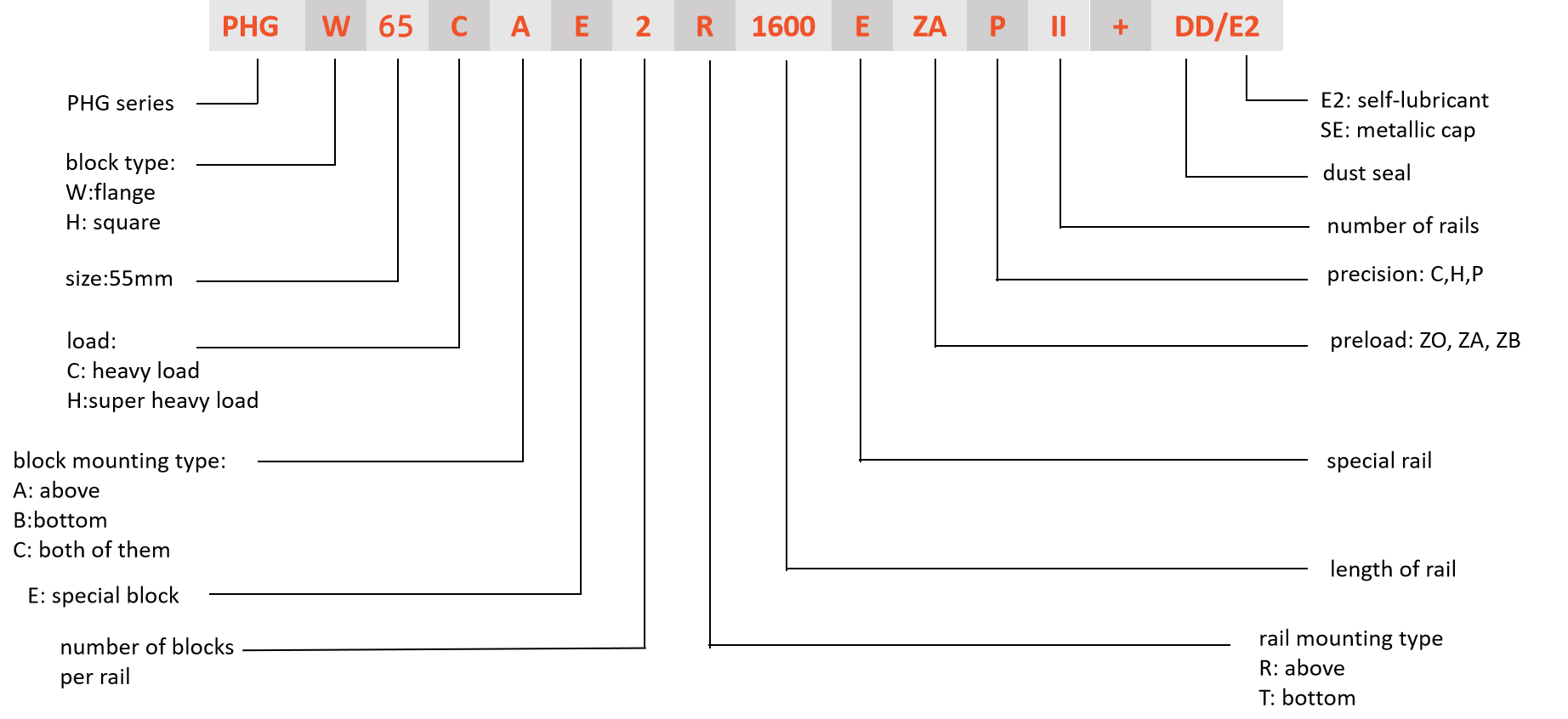 PHGH65mm types of ball linear guides