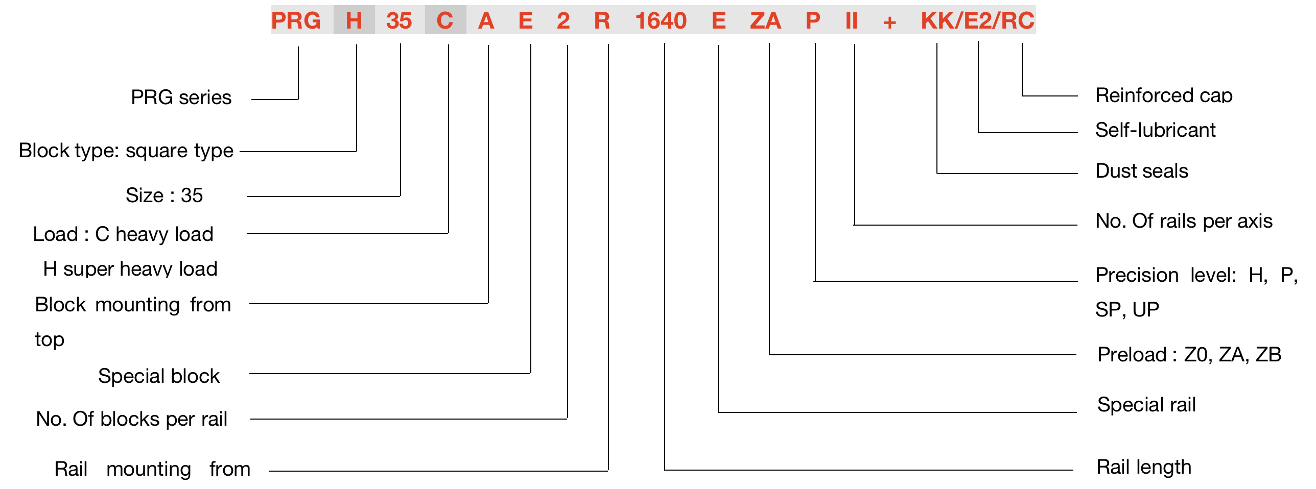 For PRGH-CA / PRGH-HA series linear roller slides, the definition of each code as follows: